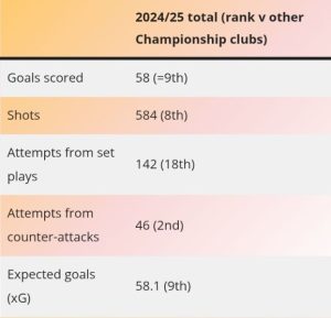 Still, their 58 goals across the season were bettered by eight other Championship sides. Even with five additional strikes in the play-offs, it’s clear they didn’t match the attacking firepower of automatic promotion rivals — Leeds United (95 goals) and Burnley (69 goals).