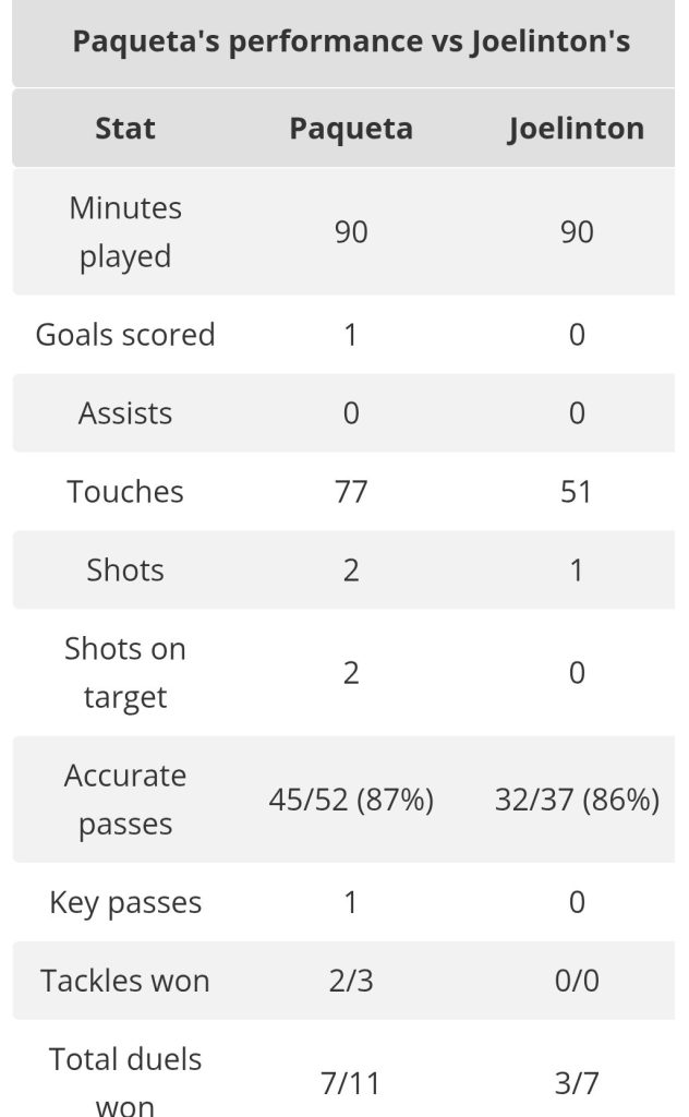 The Brazilian midfielder was completely outclassed by his countryman Paquetá, who dominated the midfield battle.