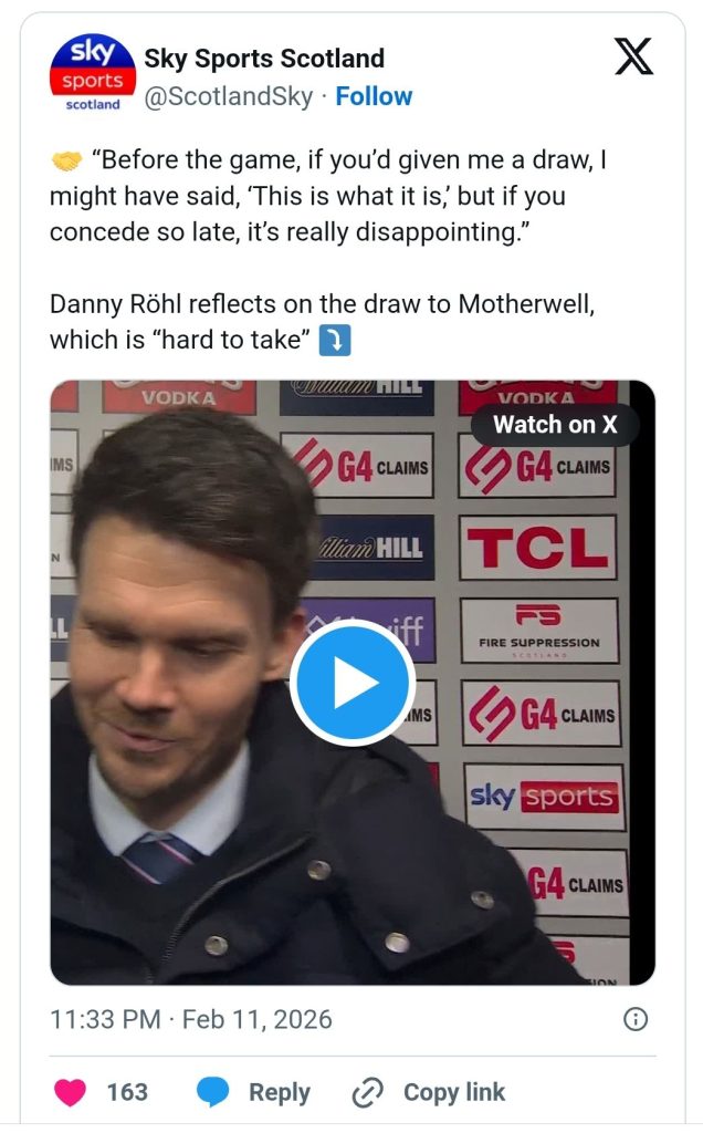 A gut punch. That is the only way to sum up Rangers’ crushing late disappointment on Wednesday night, as Danny Röhl’s side let slip a golden opportunity to close the gap at the top of the Premiership to just three points.