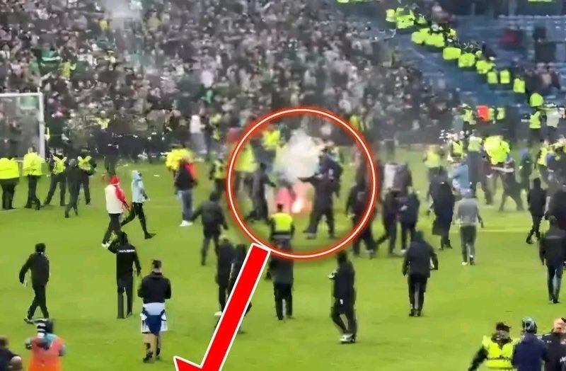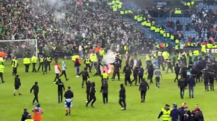 A large number of Celtic fans rushed onto the field, with some setting off pyrotechnics. In response, Rangers supporters from the opposite end of the stadium also entered the pitch, creating disorderly scenes inside the ground.