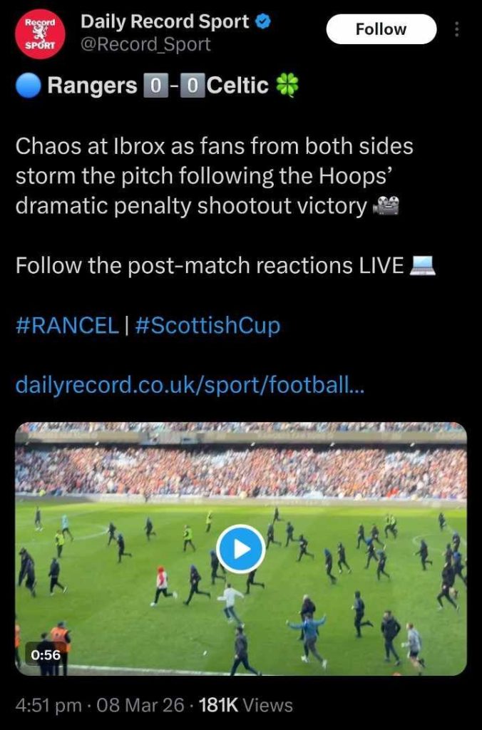 Former midfielder Charlie Adam also criticised the events, labelling the scenes “a disgrace” and “a sad day for Scottish football.” He argued that both clubs must take responsibility, stressing that teams involved in the Old Firm rivalry are meant to set the standard for the sport in Scotland.